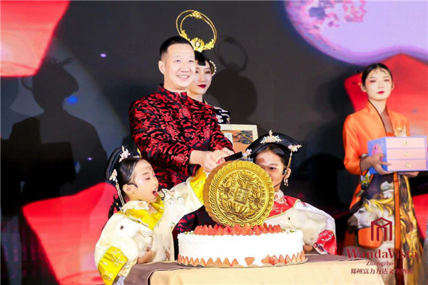 周涛总经理与旗装小格格共同切开饱含祝愿和幸福的巨型月饼