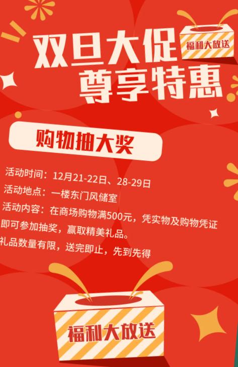 购物赢豪礼!福利大放送!满500即可参与抽奖一次~数量有限先到先得