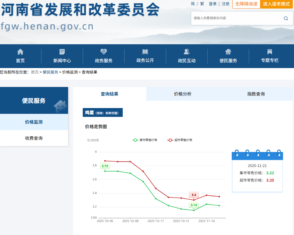 河南省发展改革委的价格监测数据显示,自10月下旬以来,全省集市和超市的鸡蛋零售价便稳定在3.1元/斤至3.4元/斤的区间内,低价运行已成为常态。
